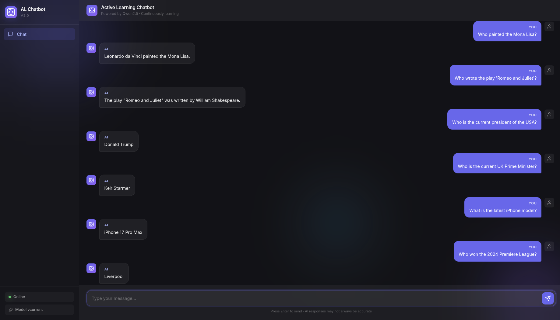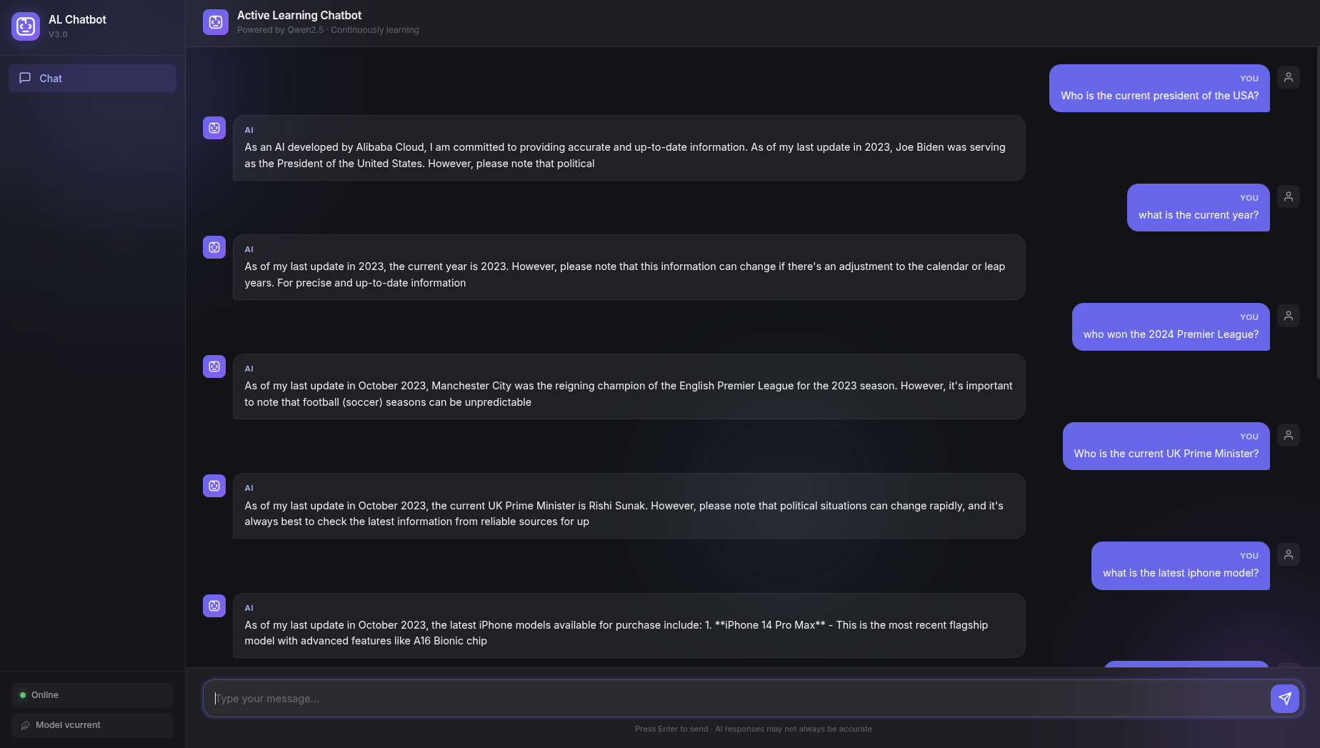 A self-improving AI system that validates answers against web sources and autonomously retrains itself to solve knowledge decay.